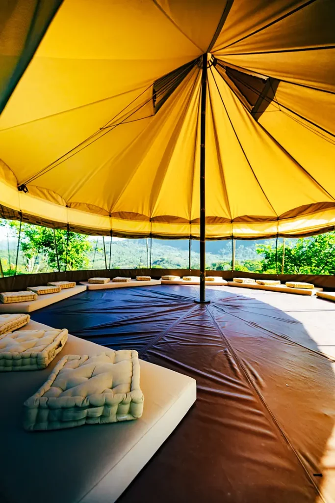 Experience sacred stillness in our luxury glamping tents, nestled within the vibrant landscape of Costa Rica’s mountains. These spacious canvas sanctuaries offer over 300 square feet of thoughtfully designed living space—more than the average hotel room, and infinitely more tranquil. Each tent features handcrafted local decor, dimmable lighting, pillow-top Queen beds with luxury linens, and cozy seating areas for reflection and rest.